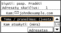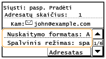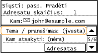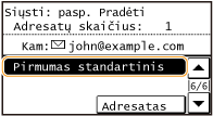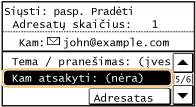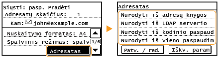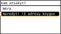 Adresų knygelės naudojimo instrukcijų žr. skyriuje Nurodymas iš adresų knygos.