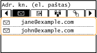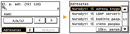 Naudojant adresų knygą galima nurodyti adresatą pasirenkant iš užregistruotų adresatų sąrašo arba ieškant adresato vardo pagal gavėjų vardus.