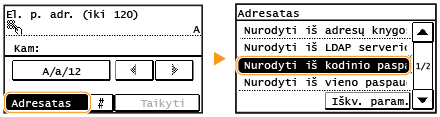 Trijų skaitmenų numeriai (kodinio rinkimo numeriai) priskiriami adresams adresų knygelėje. Galima nurodyti adresą įvedant jo kodinio rinkimo numerį.