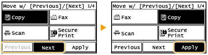 روی <Previous> یا <Next> برای جابجایی دکمه ضربه بزنید و روی <Apply> ضربه بزنید.