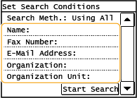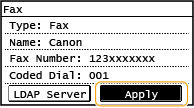 ![]() اگر صفحه تأیید اعتبار زمان ضربه روی <Start Search> ظاهر شود، نام کاربری دستگاه و کلمه عبور ثبت شده در سرور LDAP را وارد کنید و روی <Apply> ضربه بزنید. ثبت سرورهای LDAP