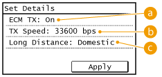 <Fax Settings> ایجاد کنید. با اینحال، تنظیمات انجام شده از <Address Book> برای تنظیمات دقیق مقصدهای ثبت شده در Address Book فعال می شوند. |