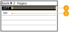 ![]() <Book->2 Pages> در هنگام استفاده از <2-Sided>، <2 on 1>/<4 on 1>، <ID Card Copy> یا <Different Size Originals> در دسترس نیست.