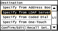 اگر دفتر کار شما یک سرور LDAP نصب شده دارد، می توانید با استفاده از اطلاعات کاربر در سرور یک مقصد تعیین کنید. با دسترسی به سرور LDAP از طریق دستگاه، اطلاعات کاربر مناسب را جستجو کرده و آن را به عنوان مقصد تعیین کنید.