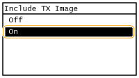 زمانی که <On> یا <Only When Error Occurs> را انتخاب میکنید، بخشی از یک سند فکس را میتوان در گزارش درج کرد. روی <Include TX Image> برای <On> ضربه بزنید. به هر حال، کارهای ارسالی که از یک درایور فکس شروع میشوند، از این گزارش حذف میشوند.