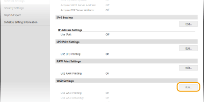 روی [Edit] در [WSD Settings] کلیک کنید.