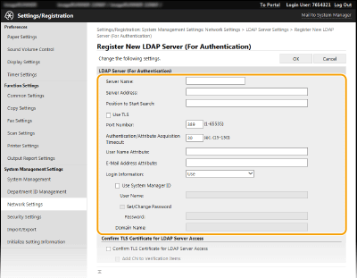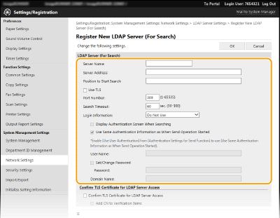 روی [Register New Server] برای [LDAP Server (For Search)] یا [LDAP Server (For Authentication)] کلیک کنید.