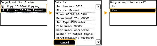 لغو از Remote UI (واسطه کاربر از راه دور)می توانید چاپ را از صفحه [Print: Job Status] از Remote UI (واسطه کاربر از راه دور) لغو کنید: بررسی وضعیت فعلی اسناد چاپ