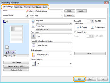 [Secured Print] در [Output Method] را انتخاب کنید.
