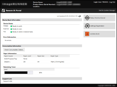 می توانید همه تنظیمات و عملیات Remote UI (واسطه کاربر از راه دور) را انجام دهید و همه تنظیمات را پیکربندی کنید. شناسه مناسب را در [System Manager ID] و کد پین را در [System Manager PIN] (