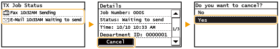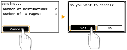 ارسال اسناد را لغو کنید، روی <Cancel> روی نمایشگر ضربه بزنید یا
