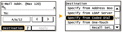 برای استفاده از شماره های شماره گیری کد گذاری شده، مقصد باید از قبل در Address Book ثبت شده باشد. ثبت مقصد در Address Book