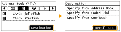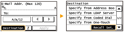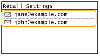 می توانید مقصد را از بین سه مقصد قبلی انتخاب کنید. زمانی که مقصد استفاده شده قبلی را مشخص می کنید، دستگاه نیز همان تنظیمات اسکن مانند تراکم را که آخرین بار برای ارسال اسناد به این مقصد استفاده کردید تنظیم می کند.