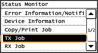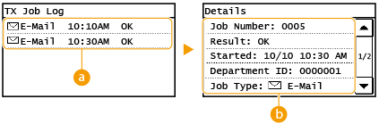 زمانی که <Display Job Log> بر روی <Off> تنظیم باشد، نمی توانید گزارشات اسناد ارسال شده را بررسی کنید. Display Job Log