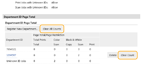 کلیک کنید [OK]. اگر می خواهید شمارش همه شناسه های بخش را روی صفر برگردانید، روی [Clear All Counts] کلیک کنید [OK].![]() |