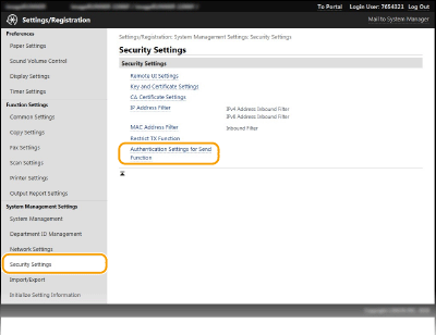 [Authentication Settings for Send Function] کلیک کنید.