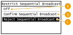 <Confirm Sequential Broadcast> یا <Reject Sequential Broadcast> را انتخاب کنید.