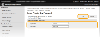 نام جفت کلید و رمز عبور را وارد کنید و سپس روی [OK] کلیک کنید.