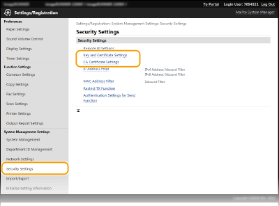 [Key and Certificate Settings] یا [CA Certificate Settings] کلیک کنید.
