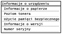 Za pomocą tej opcji można wyświetlić informacje o stanie maszyny np. ilość pozostałego papieru lub toneru.