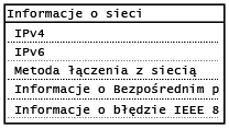 Umożliwia wyświetlenie ustawień sieciowych, np. ustawień adresu IP urządzenia, oraz stanu sieci, np. poprawności działania bezprzewodowej komunikacji LAN.