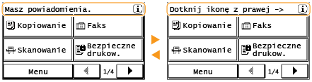Gdy wyświetlany jest komunikat <Masz powiadomienia.> lub <Dotknij ikonę z prawej ->>