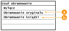 W przypadku kopiowania dokumentów, które mają mniejszy format niż papier używany do wydruku, wokół krawędzi skopiowanego obrazu mogą pojawić się linie ramki. Podczas kopiowania sąsiadujących ze sobą stron grubej książki mogą pojawić się ciemne obramowania. Opcja <Usuń obramowanie> pozwala usunąć linie ramki oraz ciemne obramowania.