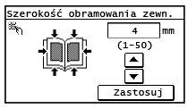 <Usuń obramowanie> jest niedostępna w przypadku korzystania z funkcji <Oryginały o różnych rozmiarach>, <2 na 1>/<4 na 1> lub <Kopiowanie identyfikatora>.