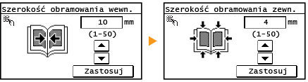 Szerokość ramki do usunięcia jest zwiększana lub zmniejszana w zależności od wartości ustawienia <Współczynnik kopiowania>.
