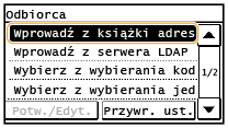 Wyświetla wszystkich odbiorców zapisanych w książce adresowej. Objaśnienia oznaczeń umieszczonych przy odbiorcach znajdują się poniżej.