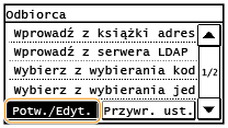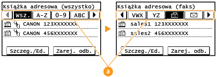 Książka adresowa umożliwia wybór odbiorcy z listy zapisanych odbiorców lub wyszukanie odbiorcy według nazwy.