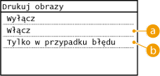Wybierz <Włącz> or <Tylko w przypadku błędu>