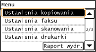 Wszystkie ustawienia z listy na temat kopiowania są opatrzone krótkim opisem. Ustawienia domyślne oznaczone są przy pomocy znaku (