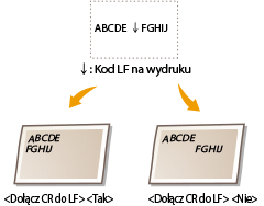 Pozwala dołączyć kod powrotu karetki (CR) do odebranego przez urządzenie kodu wysuwu papieru o jeden wiersz (LF). Jeśli wybrano opcję <Tak>, po odebraniu przez urządzenie kodu wysuwu papieru o jeden wiersz miejsce wydruku danych zostaje przesunięte na początek następnego wiersza. Jeśli wybrano opcję <Nie>, miejsce wydruku danych zostaje przesunięte do następnego wiersza, dokładnie pod odebranym kodem wysuwu papieru o jeden wiersz.