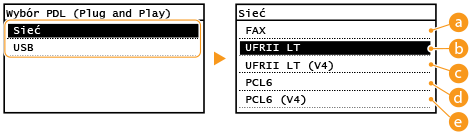 Ustawienie umożliwiające wybór języka opisu strony, dzięki któremu po podłączeniu urządzenia do komputera za pomocą technologii Plug and Play jest ono rozpoznawane jako drukarka obsługująca dany język.