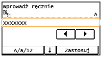 Wprowadź klucz sieciowy za pomocą klawiszy numerycznych i dotknij przycisku <Zastosuj>. Wprowadzanie tekstu