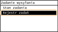 Gdy dla opcji <Wyświetlanie rejestru zadań> wybrano ustawienie <Wyłącz>, dzienniki wysłanych dokumentów są niedostępne. Wyświetlanie rejestru zadań