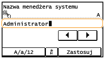 Wprowadź nazwę składającą się maksymalnie z 32 znaków w polu nazwy menedżera systemu, a następnie dotknij przycisk <Zastosuj>. Wprowadzanie tekstu