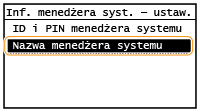 Określ <ID menedżera systemu>, a następnie określ <PIN menedżera systemu>.