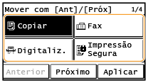 Toque em <Anterior> ou <Próximo> para mover o botão e toque em <Aplicar>.