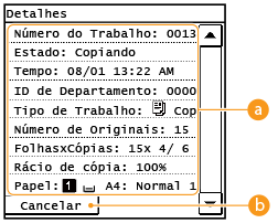Aparecem itens como o número de cópias, definições e outros detalhes. Se pretender apenas verificar os detalhes sem cancelar a cópia, prima