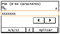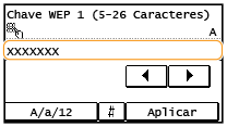 Introduza a chave de rede utilizando as teclas numéricas e toque em <Aplicar>. Introduzir texto