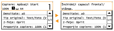 Mesajele sunt afişate în partea de sus a ecranului în situaţii precum atunci când nivelul de toner este scăzut sau când un capac este lăsat deschis. Afişajul alternează între afişarea ecranului normal şi mesaj.