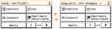 Când se afişează <Aveţi notificări.> sau <Atng.pict. din dreapta ->>