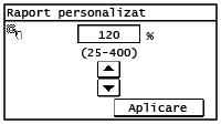 sau tastatura numerică pentru a introduce raportul de copiere şi atingeţi <Aplicare>. Puteţi seta orice raport de copiere de la 25% până la 400% în paşi de 1%.