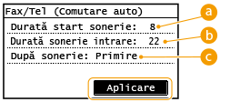 Puteţi seta aparatul să primească automat faxuri când un apel telefonic sună pentru un anumit interval. Comutare la RX Auto