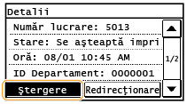 Puteţi verifica informaţii detaliate despre documentele stocate în memorie, inclusiv numărul de fax al expeditorului şi numărul de pagini trimise şi apoi să ştergeţi documentele de care nu mai aveţi nevoie.