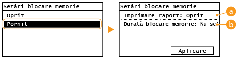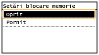 Pentru a imprima documentele primite în memorie, setaţi <Setări blocare memorie> la <Oprit>. Sunt imprimate toate documentele din memorie.