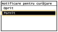 Pentru a afişa un mesaj când se detectează murdărie pe zona de scanare, setaţi opţiunea <Notificare pentru curăţare> pe <Pornit>.