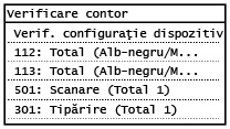 În funcţie de setările realizate de dealerul local autorizat Canon, este posibil ca următorul contor să nu fie afişat sau contorul care nu este listat mai jos să fie afişat.